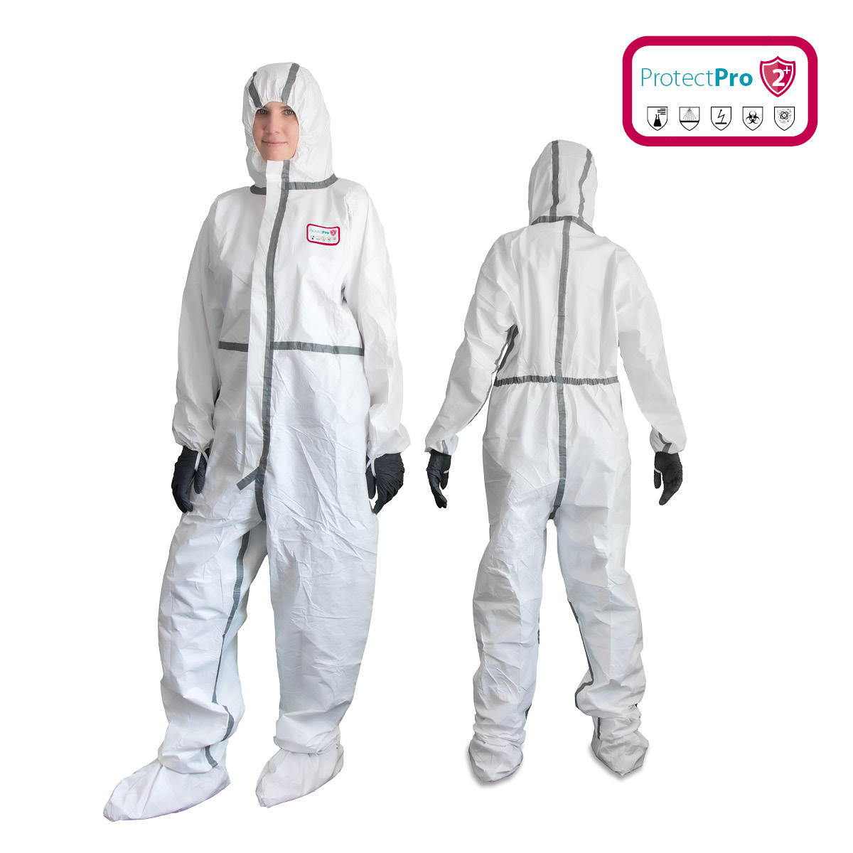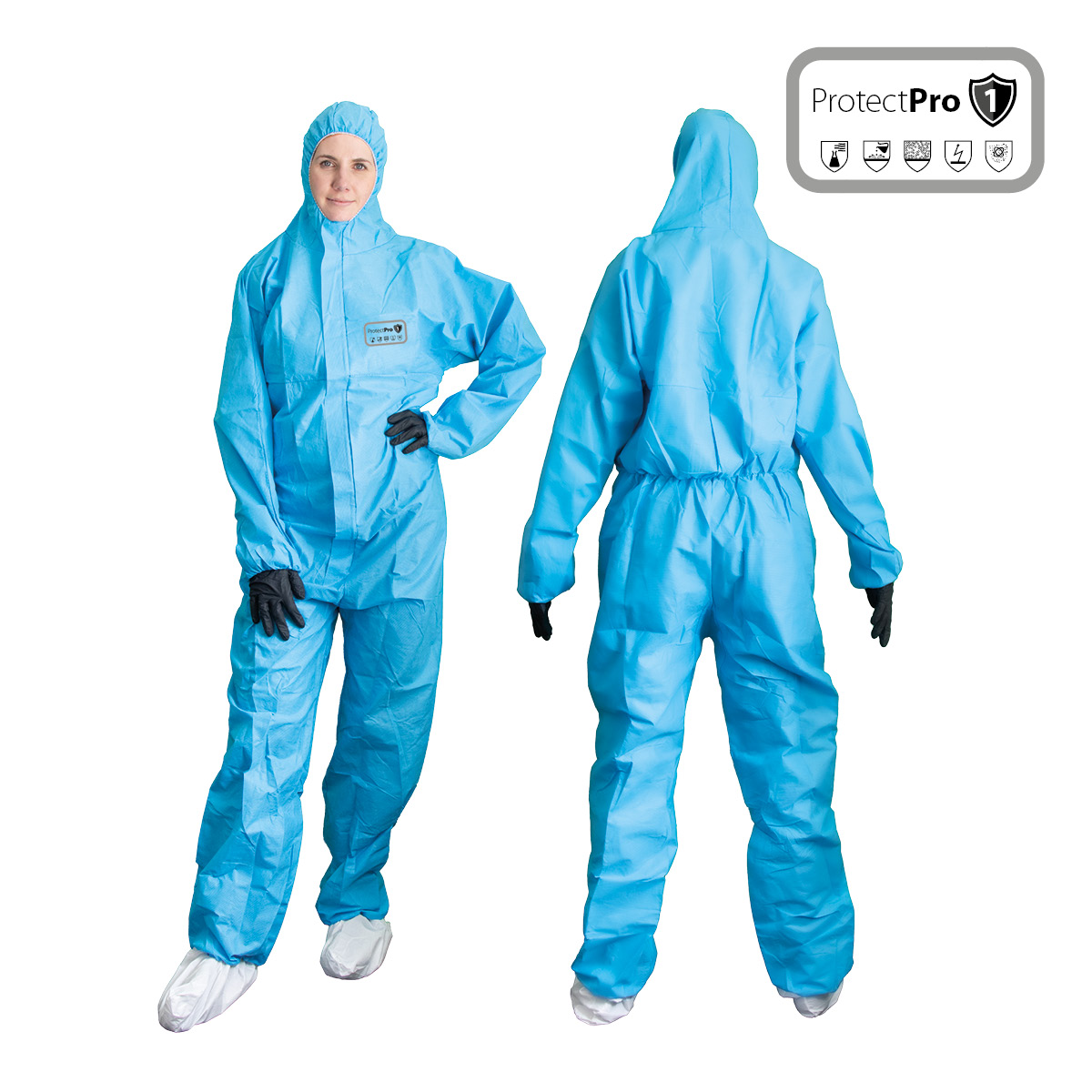 Unser ProtectPro 1 Schutzanzug ist ein hochwertiger, atmungsaktiver und antistatischer Einweg-Overall. Hergestellt aus weißem oder blauem vierlagigem SMMS-Material* (Spunbond, Meltblown, Meltblown, Spunbond-Vliesstoff) bietet er Schutz vor chemischen Partikeln. Durch das SMMS-Material bietet dieser einen sehr angenehmen Tragekomfort.